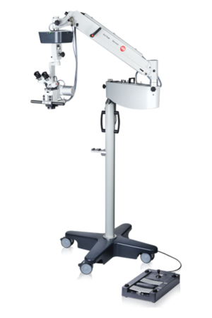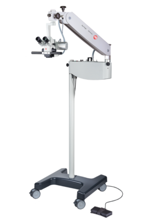 The SOM® 62 Ophthal Basic + surgical microscope combines easy and exact positioning and excellent lighting with a bright high-contrast red reflex as well as excellent optical image quality. The apochromatic 5-step magnification changer (with an optional 1:6 manual zoom) provides a bright, brilliant image with high contrast. Perform various motorized functions, such as focusing and XY coupling, via the foot control panel. Thus both hands remain free for your patients. Interruption-free Surgery Optionally a backup-lamp can be integrated to prevent interruption. By means of an integrated tilt switch, you can turn the device on or off after reaching the desired work position. Stable Fundus Reflex (Red Reflex) The 15 V / 150 W coaxial fiber optic lighting with a built-in UV filter and pivoted retina protection filter GG 475 generates a bright red reflex while providing maximum protection for the patient’s eye. Documentation Various stereo facilities for secondary observers are available for documentation, teaching or for collaboration with assistants. Alternatively, you can connect the microscope to a video camera in conjunction with a TFT-monitor to document your findings. Or use a combination of both options side by side! Sterility Keep your microscope completely sterile through the use of asepsis caps and drapes at the controls.